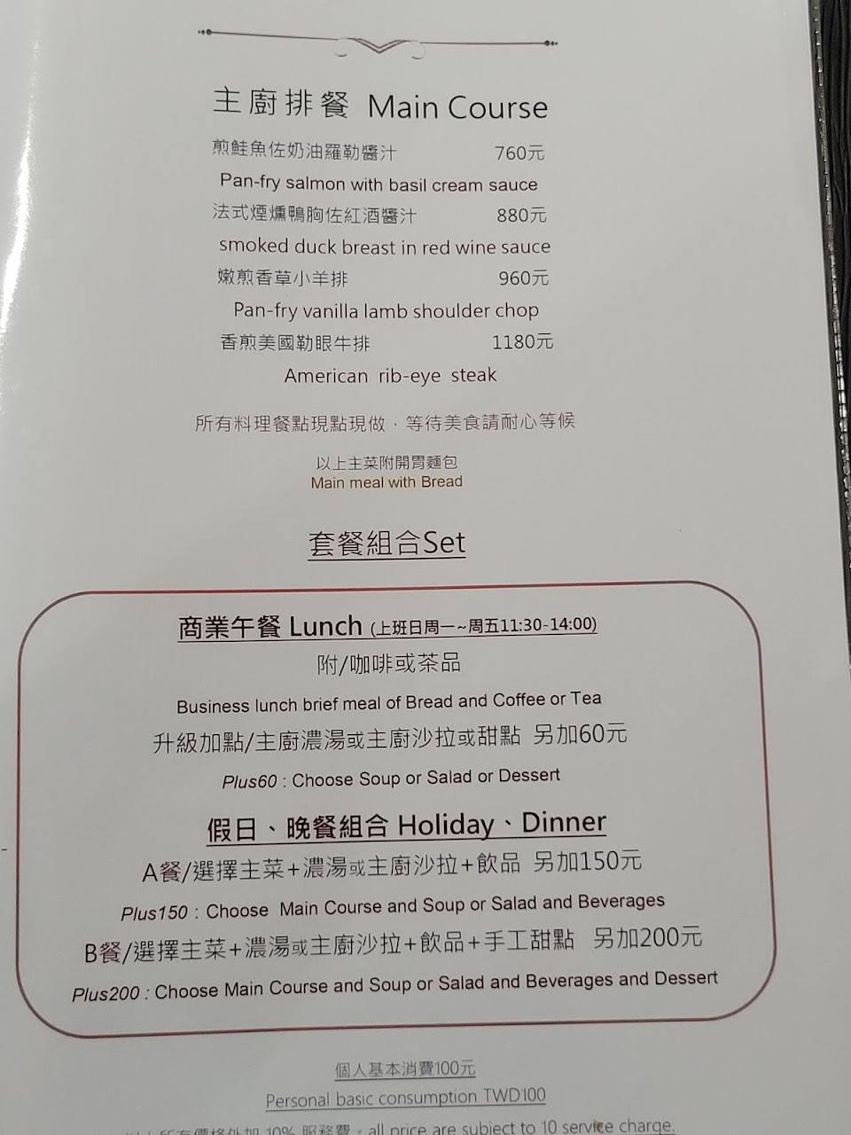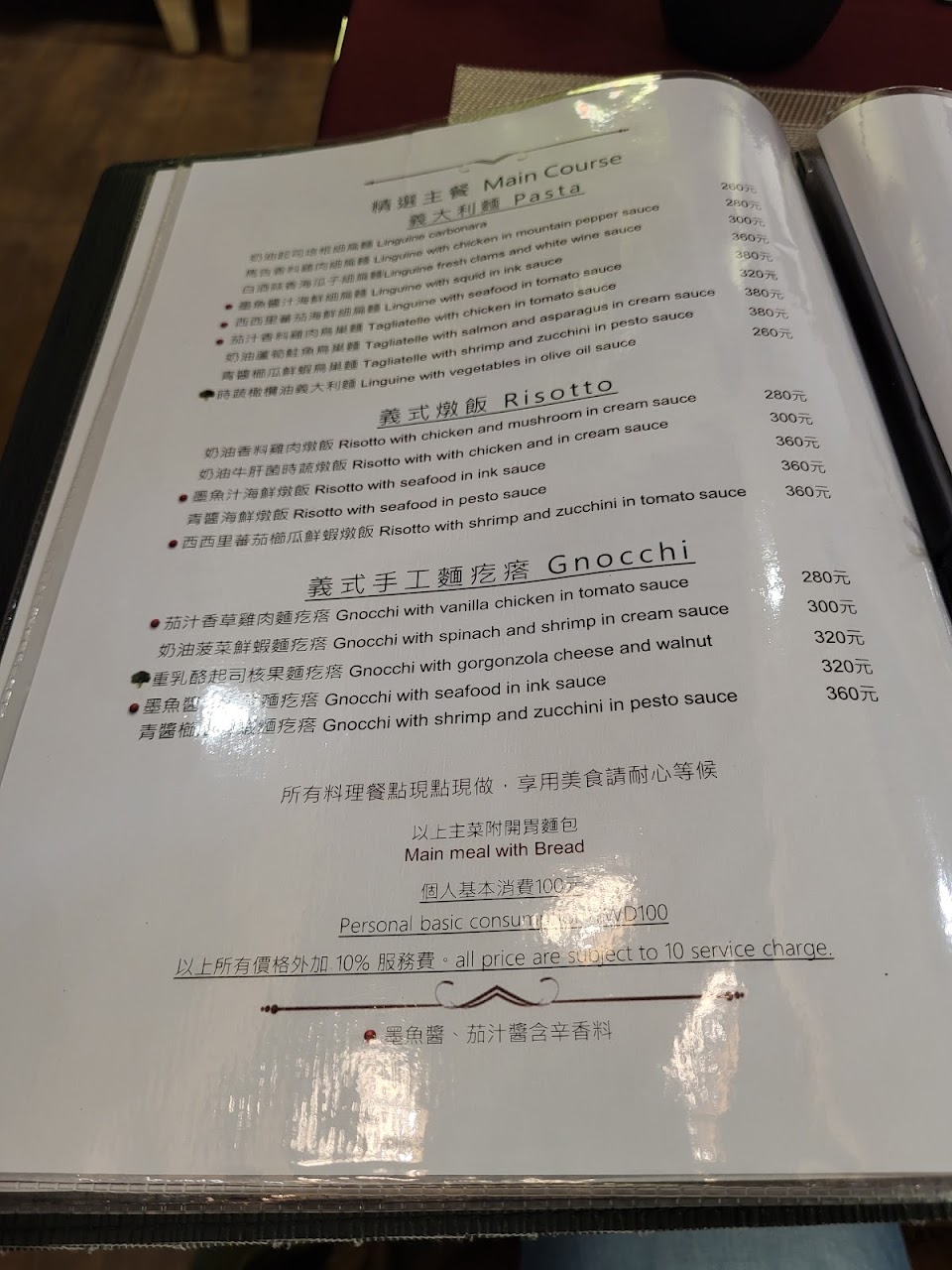 又不是沒收服務費,東西也沒特別便宜,只是吃個義大利麵變成吃法國料理,要吃3小時以上的意思嗎,明明內廚有3個廚師,也只剩2桌客人的主餐(我們2個人另一桌也2個人)
