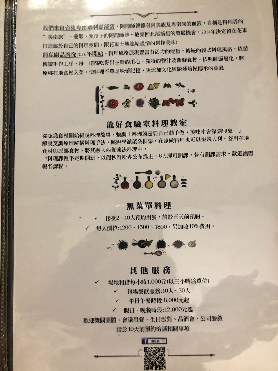 在花蓮除了可享受各式原民風味餐,善用在地食材入菜的龍私廚義法料理,是另一個好選擇☺️☺️☺️