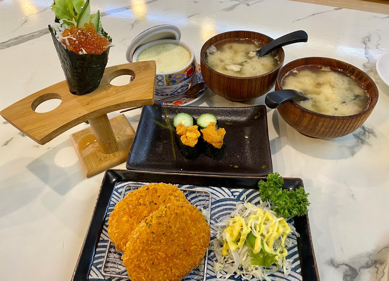 餐點新鮮、好吃,很推薦可以來吃吃看,茶碗蒸料很多,炙燒鮭魚親子丼非常好吃~!但吃完真的很飽。