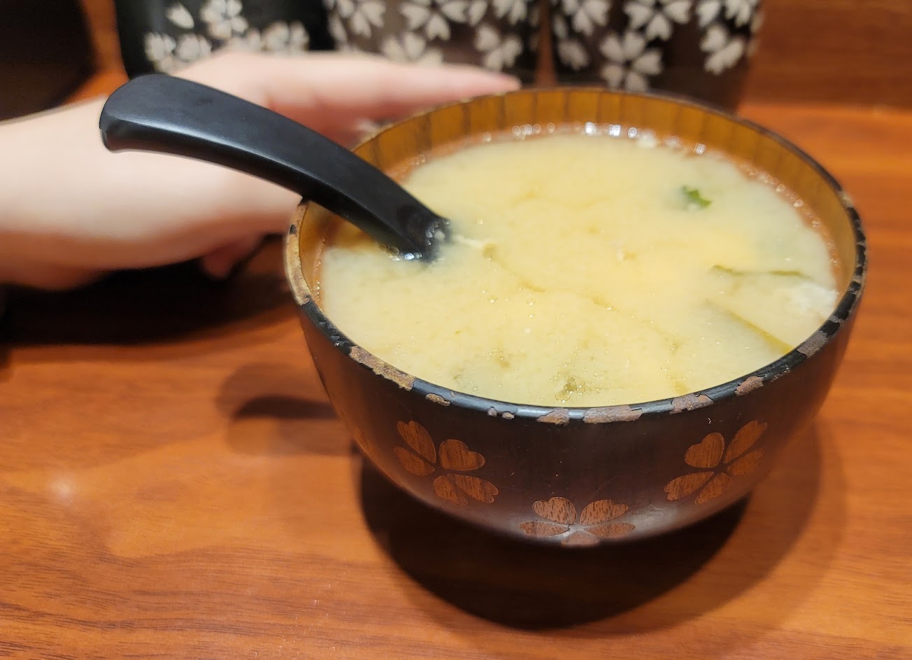 其他餐點幾乎沒有進步,味增湯很稀,大部分是魚皮,連碎魚肉都很少。菜單上的烤物有95%不能點。秋刀魚烤得不錯。