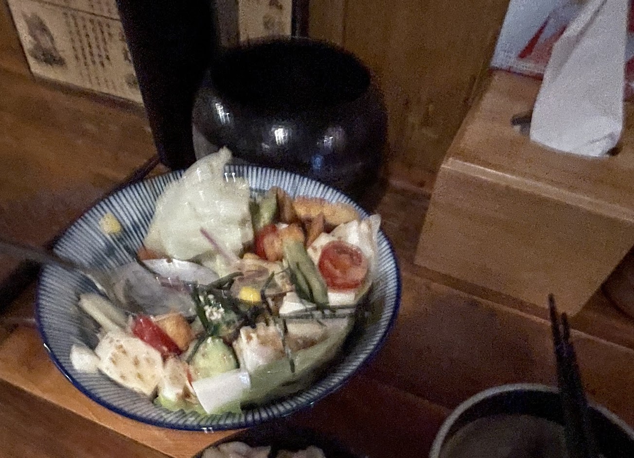 胡麻小黃瓜… 我不知道小黃瓜是想切成什麼形狀… 總之有大有小超級難夾??建議滾刀就好? 醬燒豬肉串就…一般烤肉醬的味道,再焦香一點或許不錯 想試試看山藥的,結果沒了? 想試試看雞軟骨的,也沒了? 這價位在台北算很便宜 但在花蓮貴10-20塊之類的 餐點就平平,不會特別難吃,小酌聊天ok