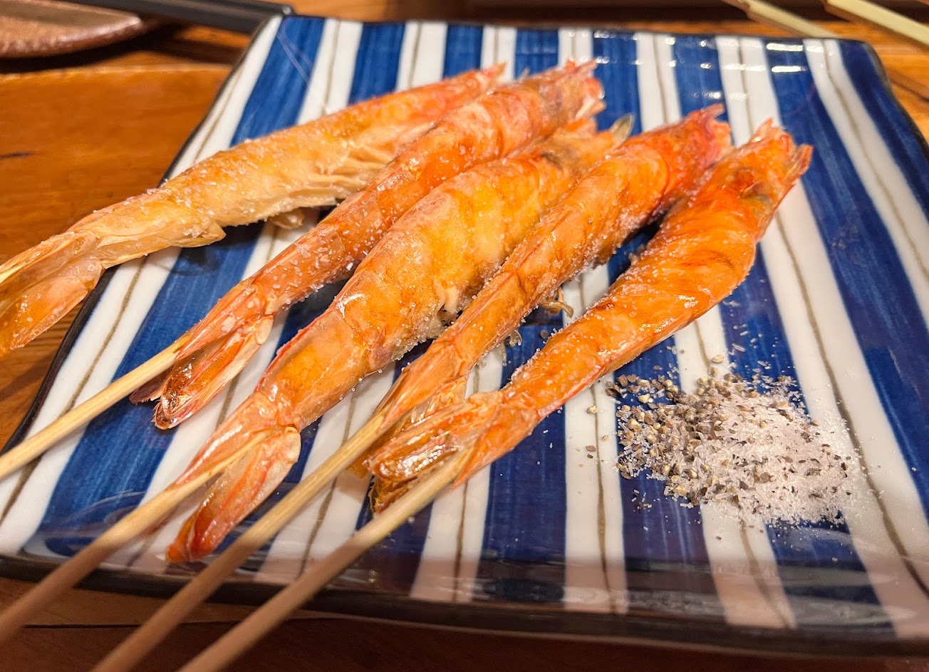 每一道都非常好吃!! 紫蘇梅雞肉串:雞腿肉串外表不乾柴,肉汁都有鎖在肉裡,調味恰到好處 非常好吃! 烤一夜干:不過鹹,魚肉油脂香氣很足,肉不澀,也是非常好吃 明太子炒烏龍:雖然不是日式洋食的奶油作法,但是培根的香氣很足,拌上明太子意外的很鹹香好吃 炸生蠔:沒有油耗味又不刮嘴的麵衣,咬開後是新鮮的生蠔鮮味,非常好吃!
