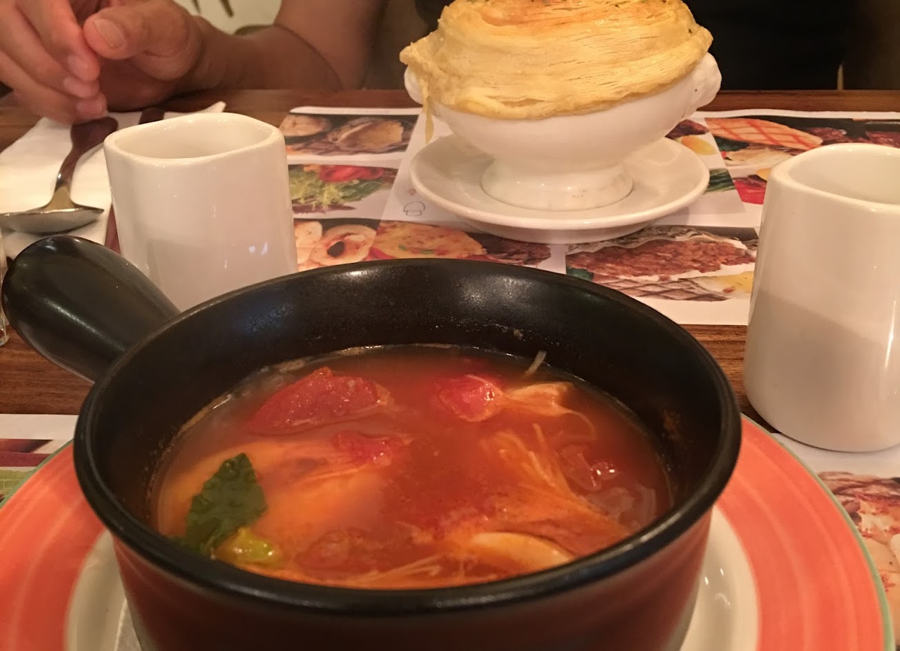 各式的湯品也是我喝過有印像以來海鮮料最多的湯 雞排跟牛排也很好吃