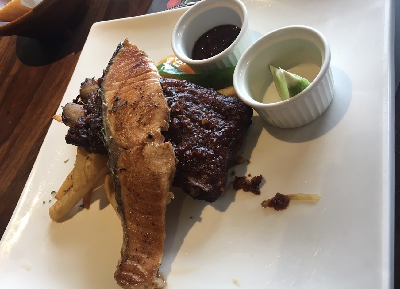 聽從服務員的建議,點了10oz特選沙朗佐挪威鮭魚,牛排非常軟嫩多汁沒有腥味,配黑胡椒醬也很搭。整個套餐所有品項都好吃,完全不雷,份量也很充足,吃得非常開心。
