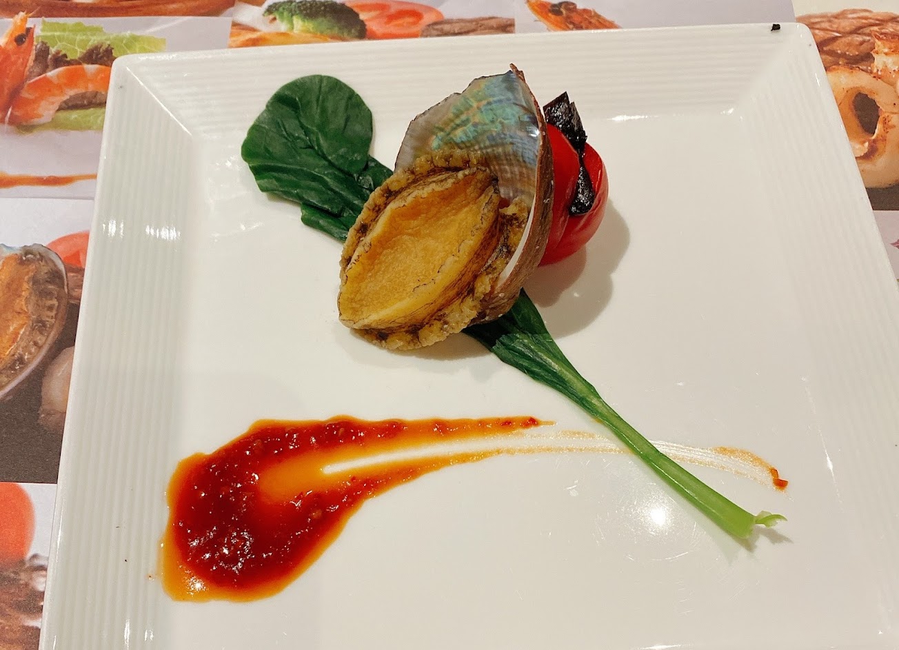 前菜五味鮑魚煮得軟嫩,擺盤也用心