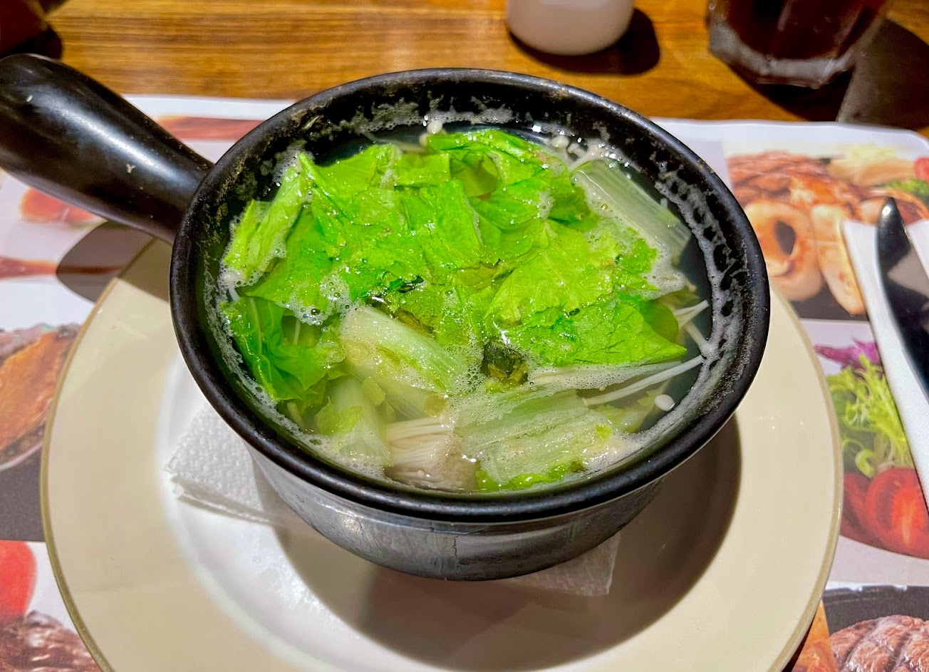 紅茶 梅汁 海鮮蔬菜湯 sky秘製碳烤豬肋排