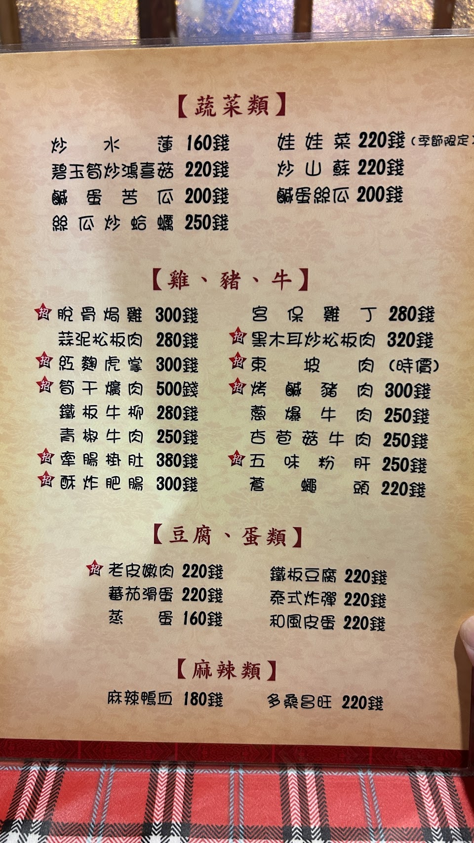 以前每年至少去個七八次,家庭家常菜或同事聚餐。近年發現每況愈下,連食材(宮保雞丁-花生)也不新鮮(臭粗味),炸溪魚吃了舌頭會癢,鳳梨蝦球也不比以往,已經是我的極限了。 從前,對我而言「多桑」就是品質的保證。 不過以後應該不會在這裡用餐了…… 唉~ 服務 內用 餐點類型 晚餐 平均每人消費金額 $400-600 餐點:1 服務:3 氣氛:4