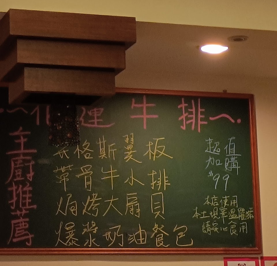 男生櫃檯服務人員手腳俐落服務親切,環境整潔優但油煙味稍重,沙朗牛排口感中規中矩,綜合評分五顆星