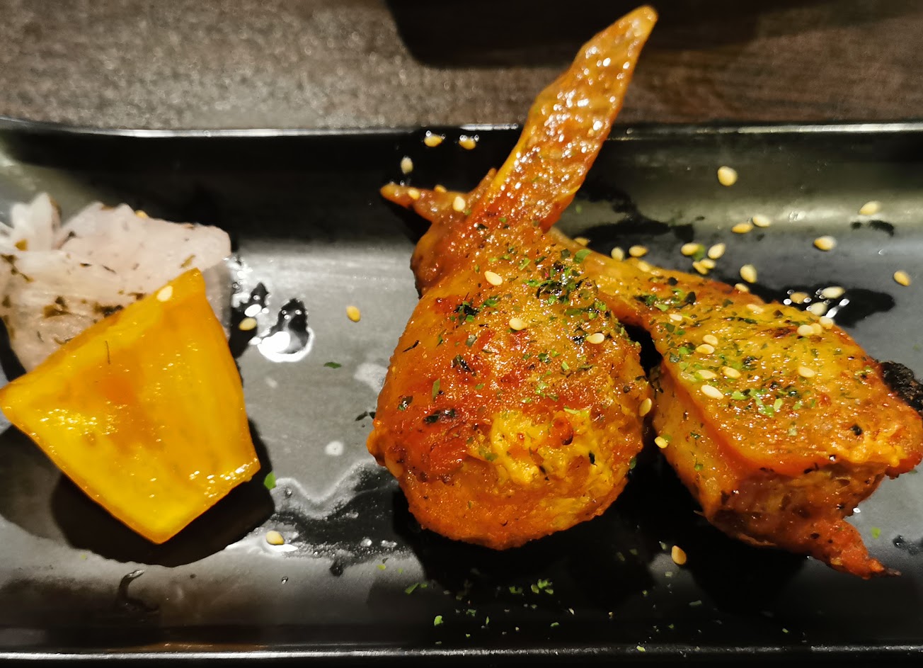 點了烤雞肉串,結果讓人很失望,肉很大塊,但不是一般串烤店那樣把生雞肉烤熟,而是把熟雞肉切塊以後串起來在火上烤一下。點的其他菜:天婦羅、手卷、炒青菜,松阪豬表現不過不失。店家很有個性,送菜單時聲明只能點菜一次,不能加點。結論是:如果想要吃飽飽,店家提供的份量一定可以滿足你,如果想要尋求味蕾的新奇和滿足,這裡不適合。