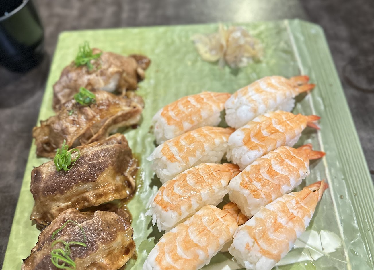 芋頭壽司和加州卷都很紮實,加州卷內餡包炸蝦,上面還有鮭魚,很豐富。