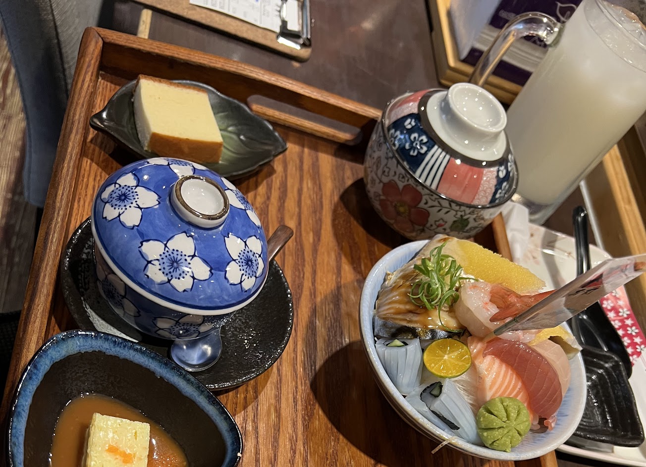 鮮魚味噌湯以及茶碗蒸,鮮魚味增湯喝起來中規中矩,沒有特別鮮甜,茶碗蒸料不錯,但整體沒有茶碗蒸該有的嫩滑口感,感覺太固體,也不是特別香甜。