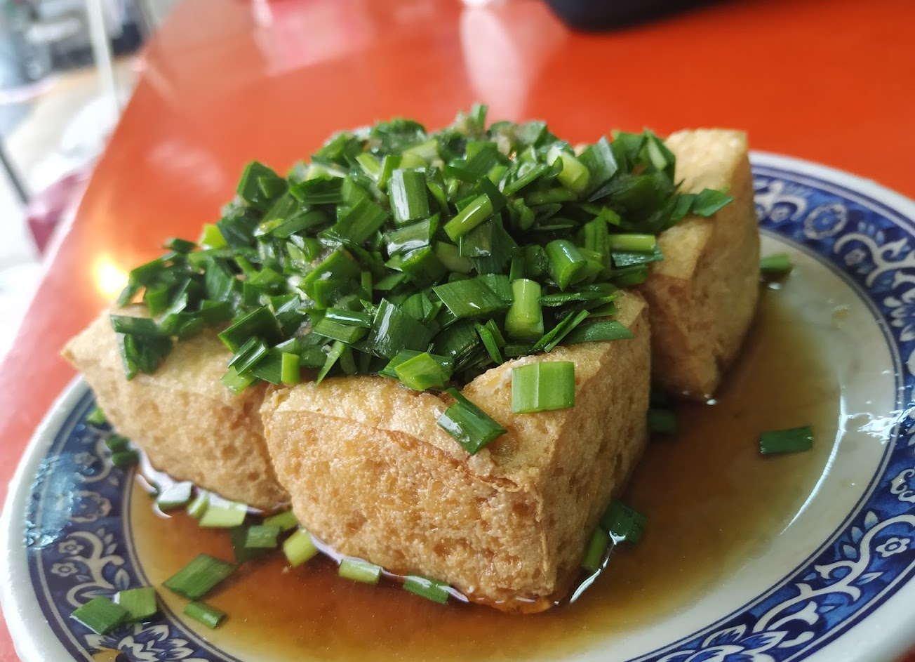 沒有特別好吃就是上面放了韭菜的臭豆腐,韭菜跟臭豆腐沒有合在一起的感覺,醬油也只有一個鹹而已。