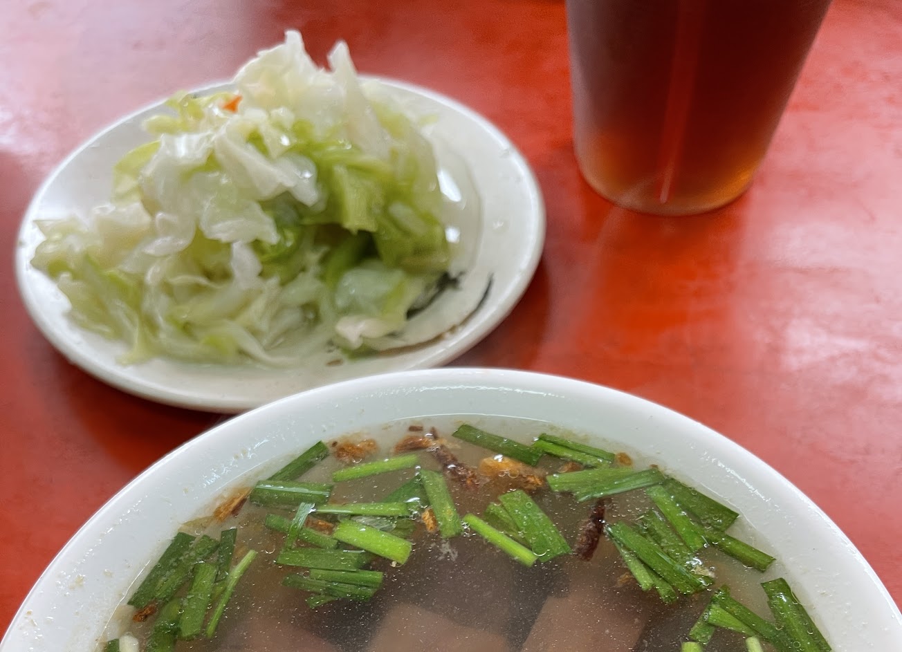 豬血湯湯頭清淡,豬血口感軟嫰。