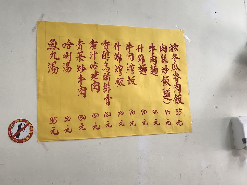沒有點單,考驗記性耐心。確實飯心硬硬的原因不明,魯肉有肥。牆上沒有雜菜麵但有這道。