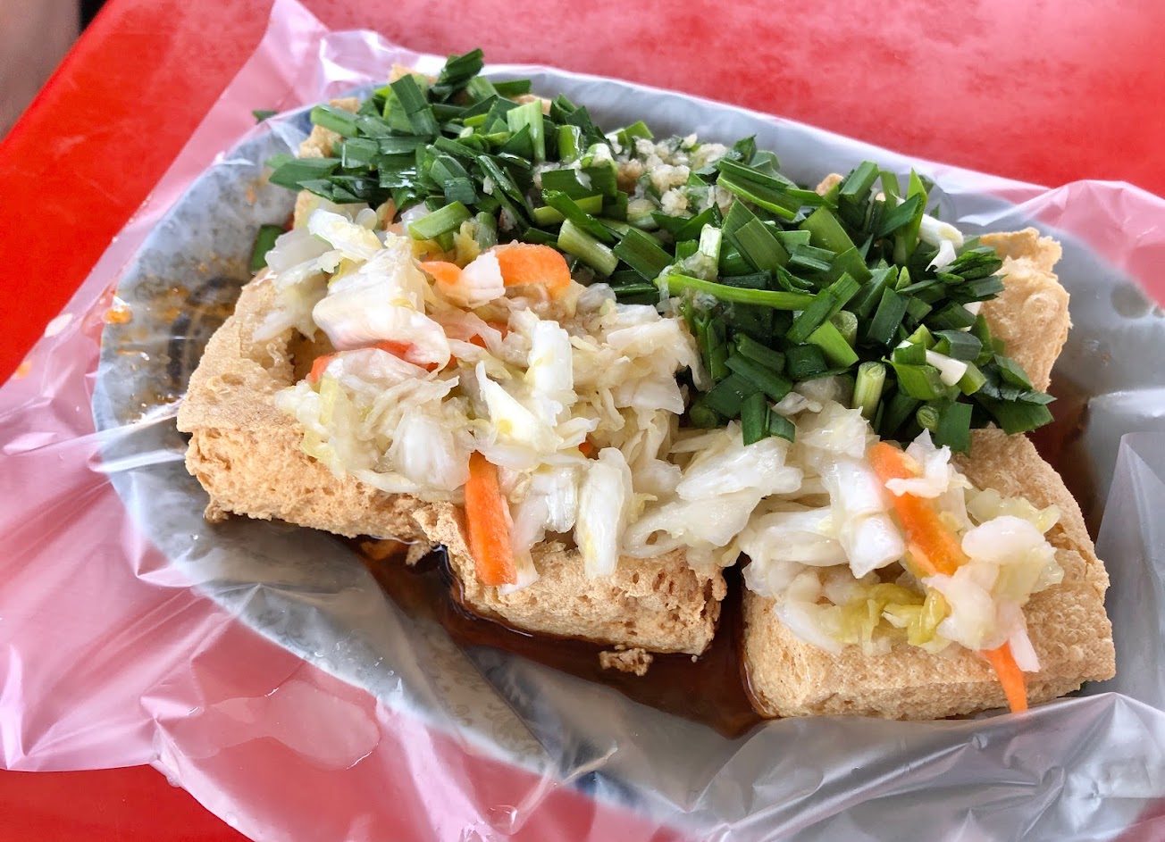在地人說最好吃的韭菜臭豆腐,那個韭菜的份量多到