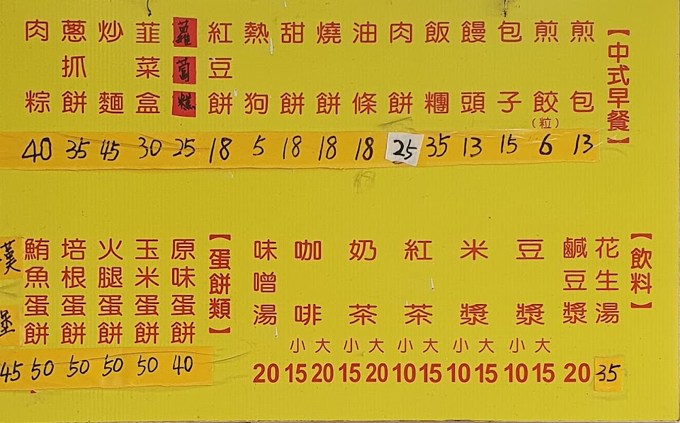花生湯 蘿蔔糕 韭菜煎餃 燒餅油條 甜燒餅 紅豆餅