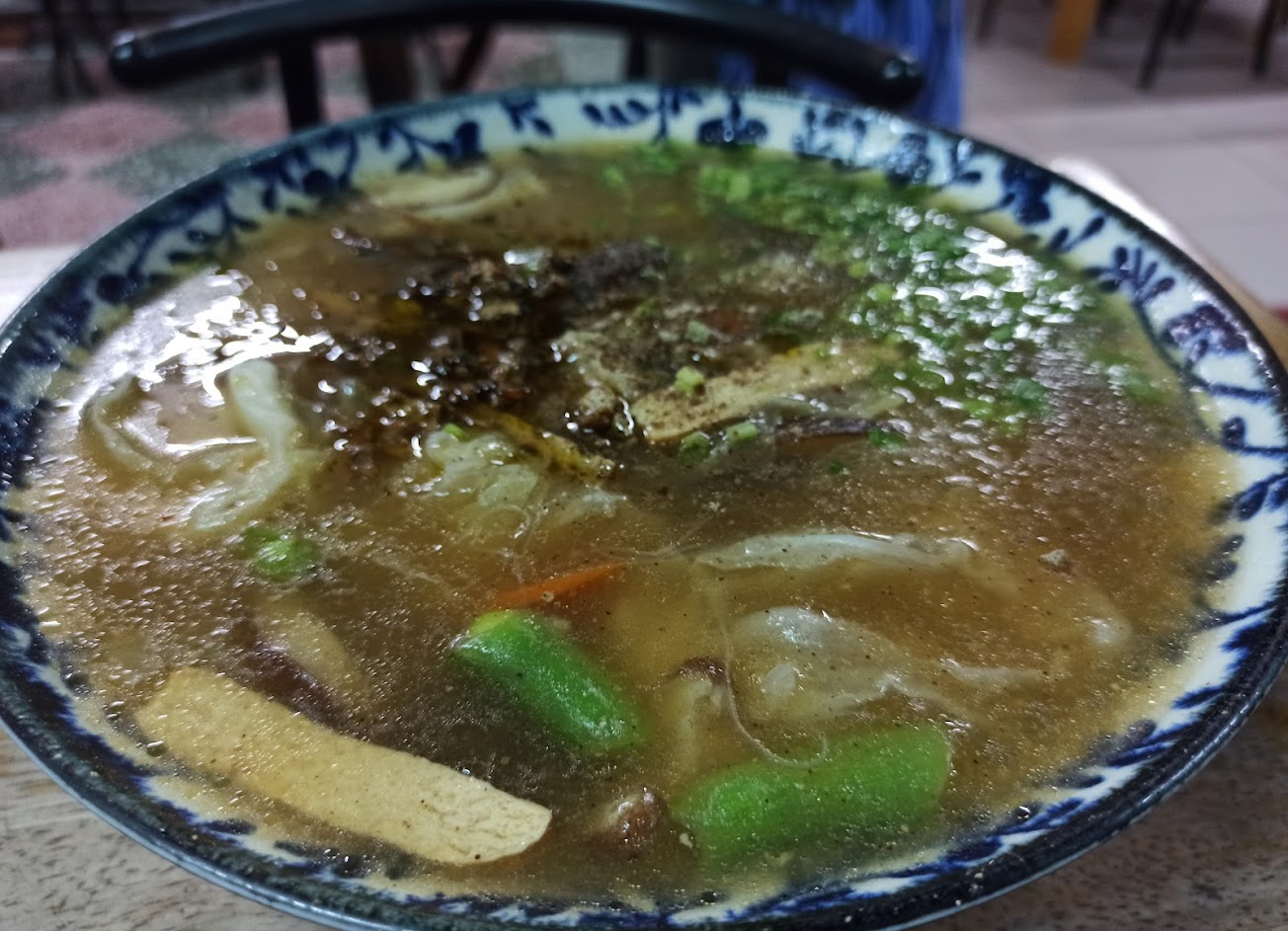 拿用過的日曆背面來點餐,很特別。米粉庚、素牛肉麵湯頭超讚,份量足!大推。