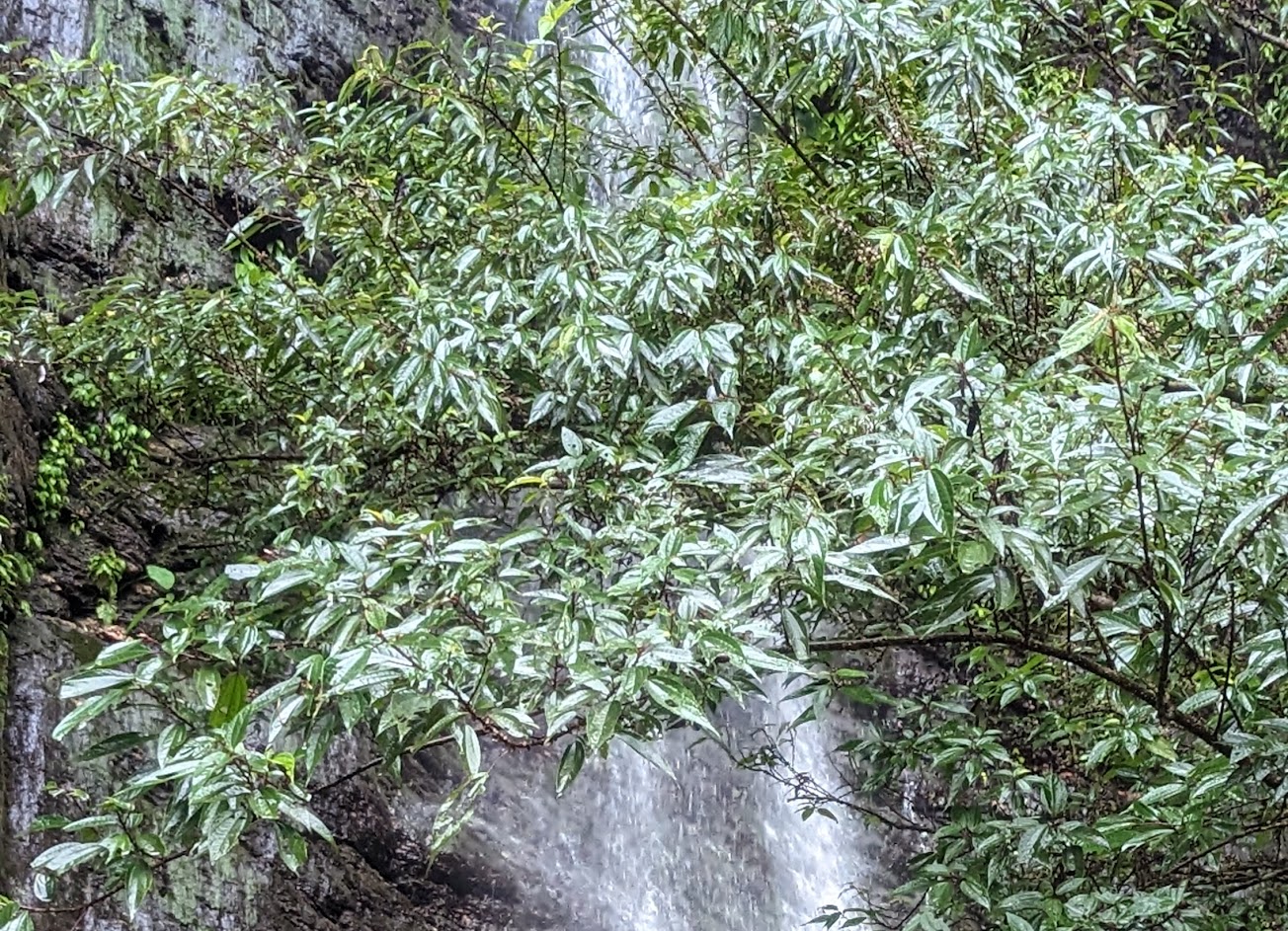 美麗的瀑布,負離子含量超標,嚴重的厲害。水鴨腳秋海棠、臺灣苧麻、闊葉樓梯草等植物生長著。