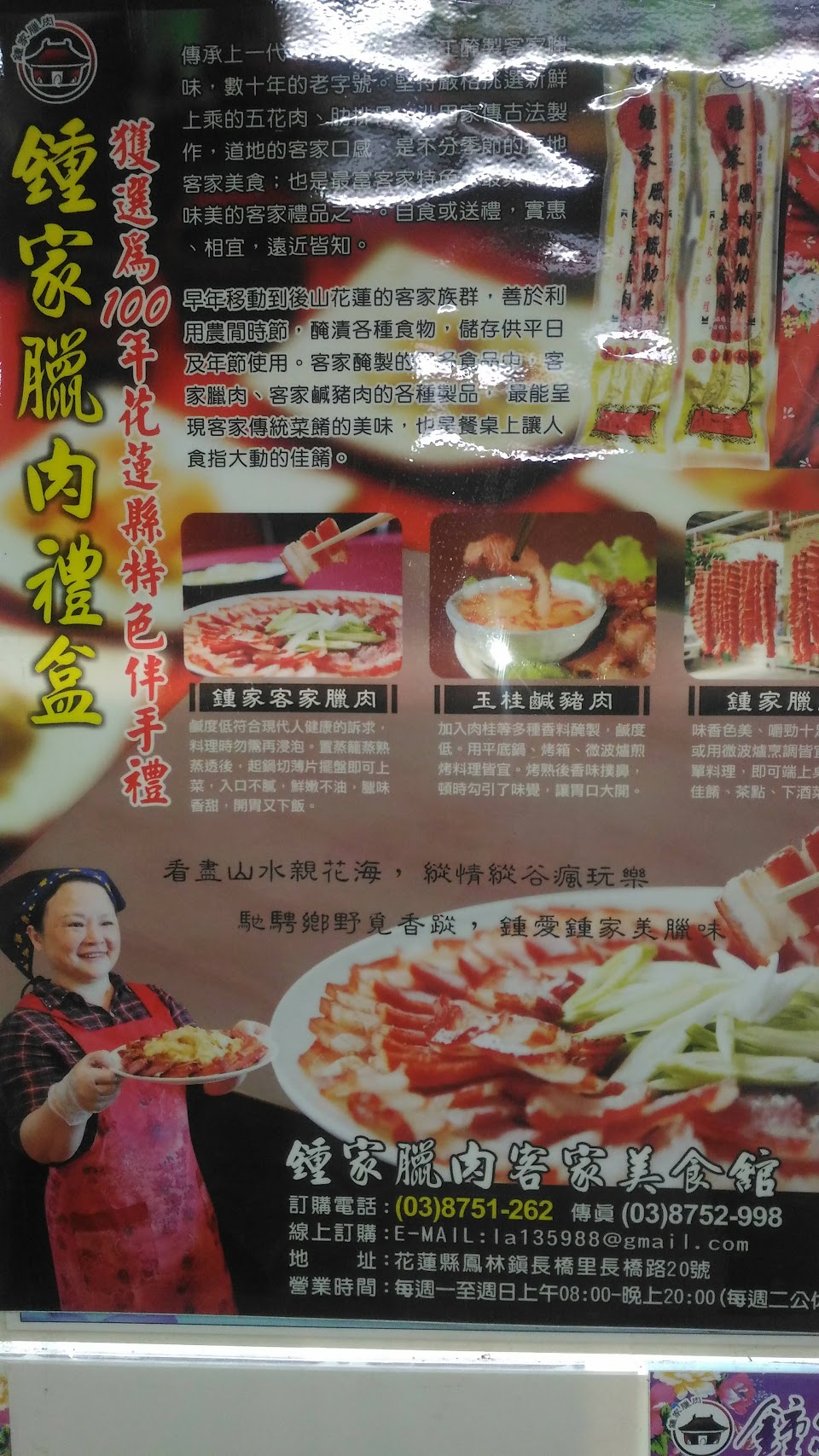 玉桂鹹豬肉真是太好吃了,甘甜濃濃的客家味,不死鹹。高粱香腸酒香四溢,真好食!百分百物超所值!感謝鍾家的客家美味。花蓮之旅行前,再次拜讀須文蔚老師的《看見機會:我在偏鄉15年》一本好書,書中介紹輔導數位機會中心的點點滴滴,4/25特別安排行程拜訪數位機會中心的佼佼者「鍾家臘肉館」,熱情接待的應該是老闆鍾景華夫婦及其員工,用客家話聊了一下,就覺得親近。帶回2高粱香腸、2玉桂鹹豬肉、1客家臘肉,鍾先生還送了一大碗剛煮好的肉羹,回到台北與家人分享,只要吃到的都說讚,客家料理還是對味,感謝鍾家所做的傳承與努力。