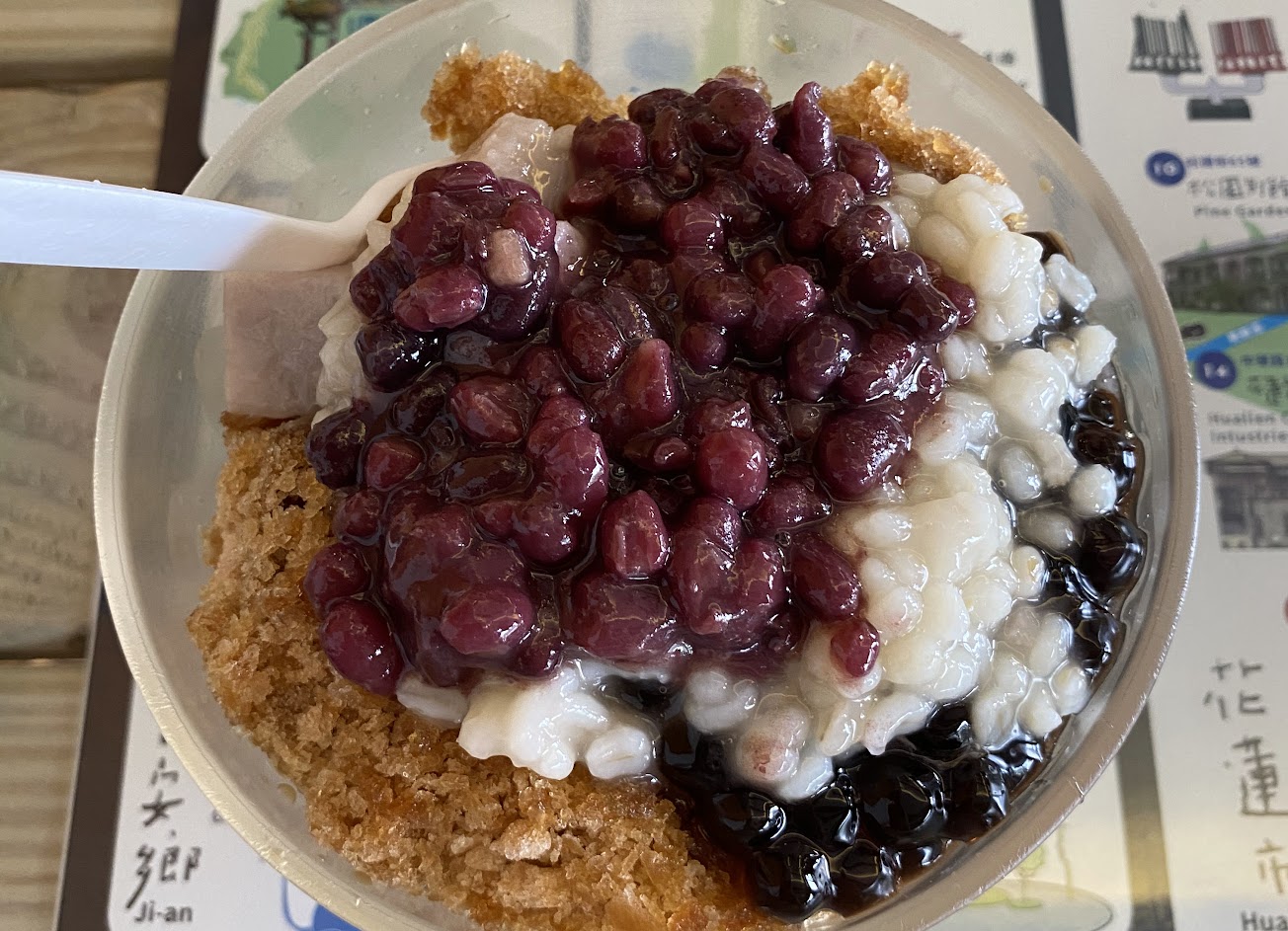 大推?一定要推,黑糖剉冰讚,跟其他市區以往都淋黑糖醬的口感完全不同,黑糖做冰磚再剉冰加上配料超美味,有來花蓮必吃,口感佳 …