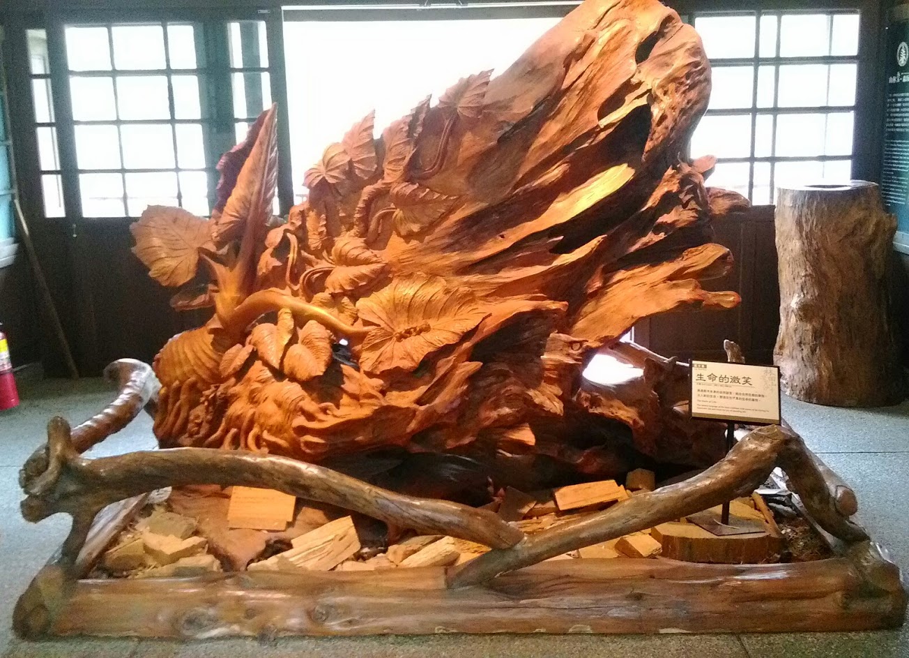 中山堂裡放著帶有動物雕刻的神木,園區內充滿古樸日風建築、鐵道、涼亭、火車,深富文化教育的素材,真不枉此行!