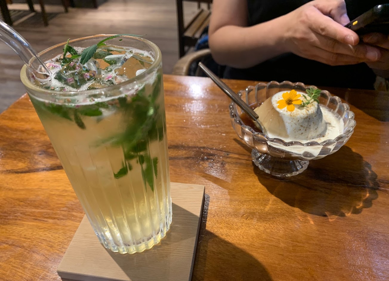 第一次喝到擂茶拿鐵咖啡非常有特色好喝,尤其是熱的,整個捧擂茶缽喝非常有趣,甜點也都很好吃,環境舒適,還有可愛的店狗店貓,大推