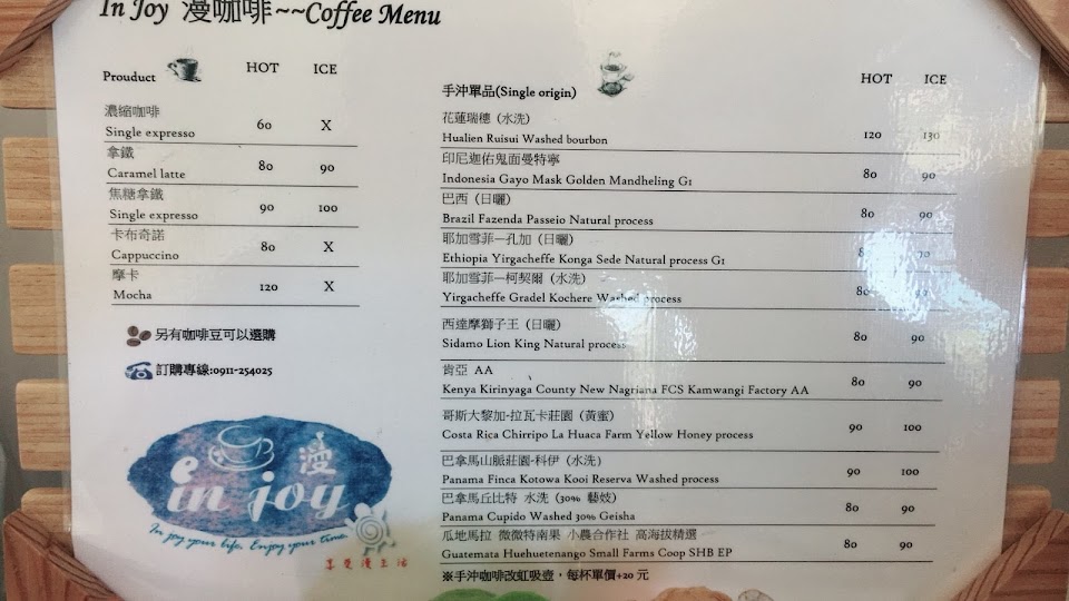 2024最新在地推薦餐廳的菜單_In Joy 漫咖啡(淺&極淺焙專賣)的菜單、圖片