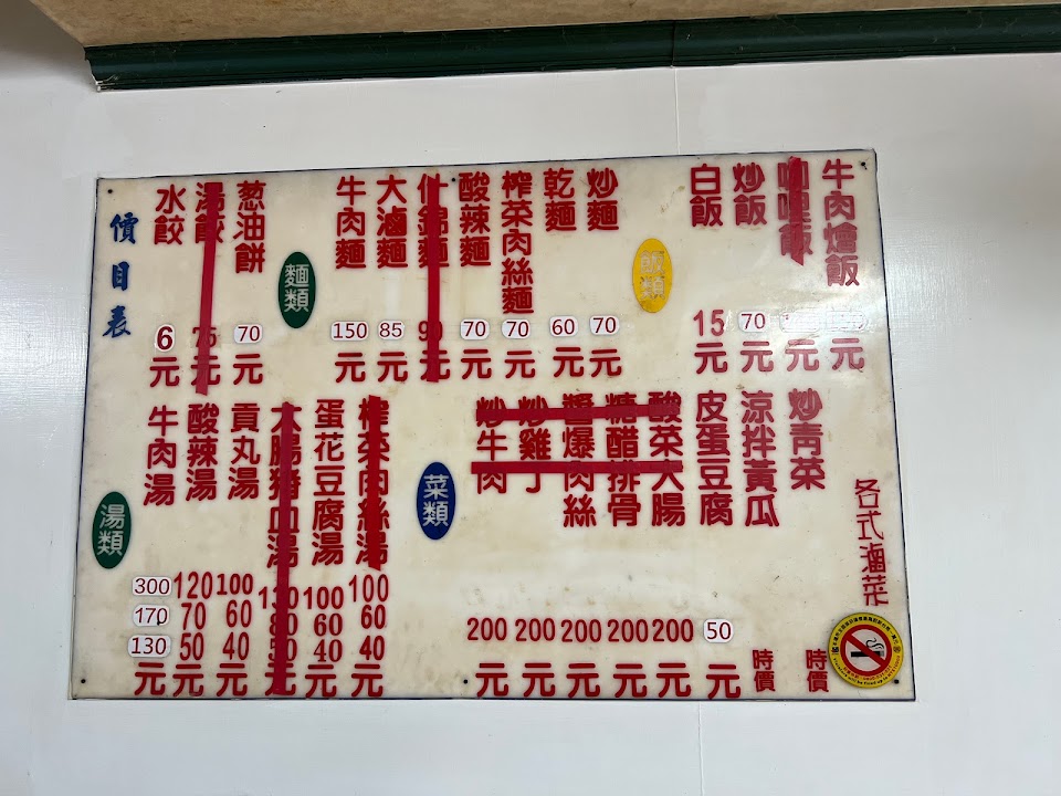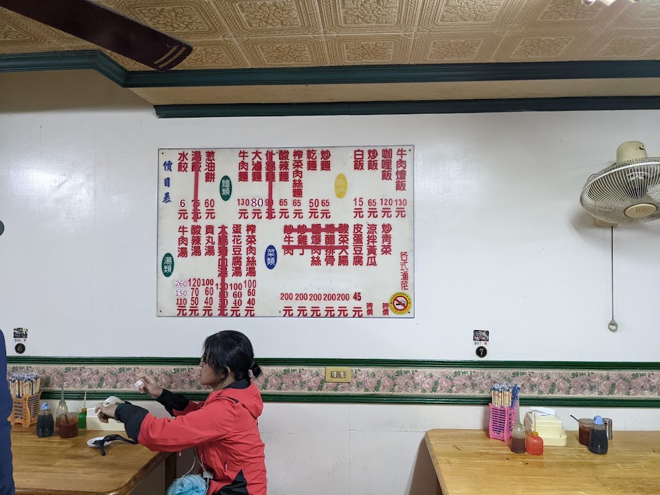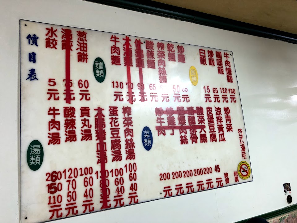 水餃 蔥油餅 粉腸 蔥油餅 炒飯 炒麵 蔥油餅 水餃 酸辣湯 滷味切盤 蔥油餅 牛肉燴飯 水餃 滷味小菜 嘴邊肉 乾麵加魯蛋 肉片 韭菜水餃 滷花生 海帶 滷蛋 酸菜