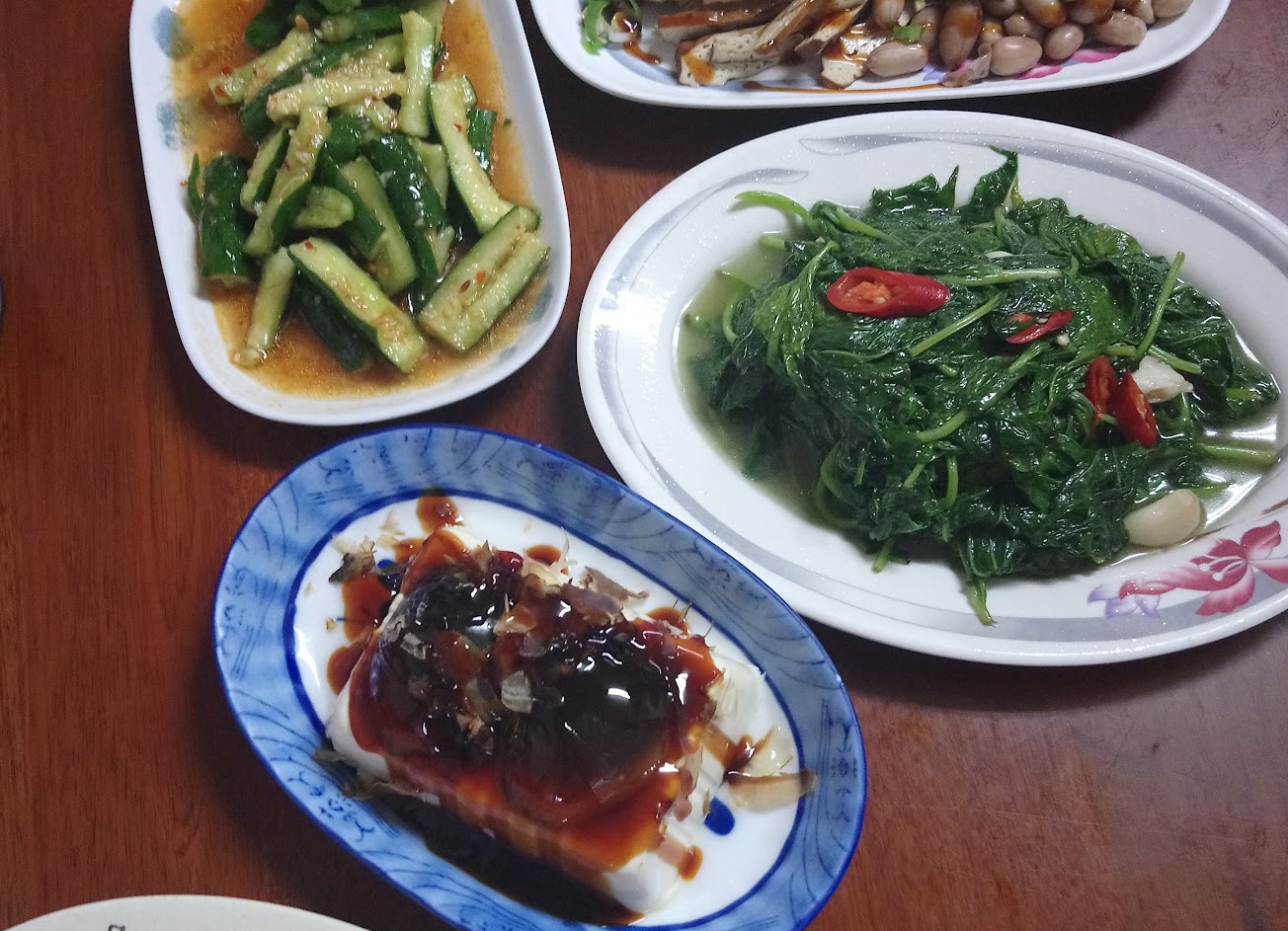 蔥油餅,大滷麵,水餃。各式小菜便宜