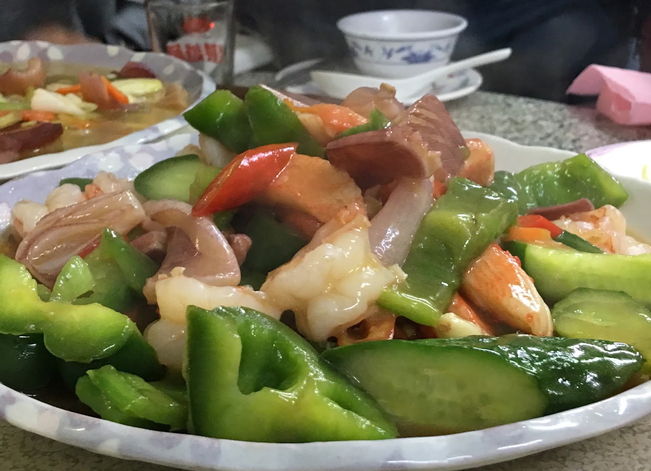 嚇人喔!我們怎麼那麼餓呀!三個人order七道菜,瞬間秒殺。 隔壁有家洗衣店,上次來請他幫忙烘乾衣服,聊來聊去,忽然老闆來一句「花蓮呀!好山好水,好無聊」,真是當地人的心情寫照呀。