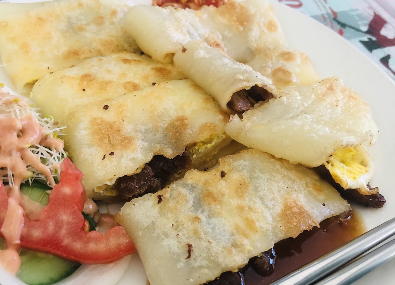 人氣很旺的早餐店,等候了一陣,板娘連忙收拾桌子讓我們幾個入座,蛋餅酥脆好吃,料多豐富