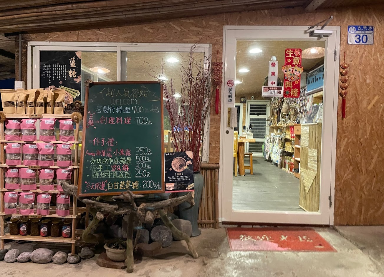 回鄉照顧長輩的一對夫妻所開的店,每道菜都精緻而特別,餐廳的裝潢和設計也都取材自部落