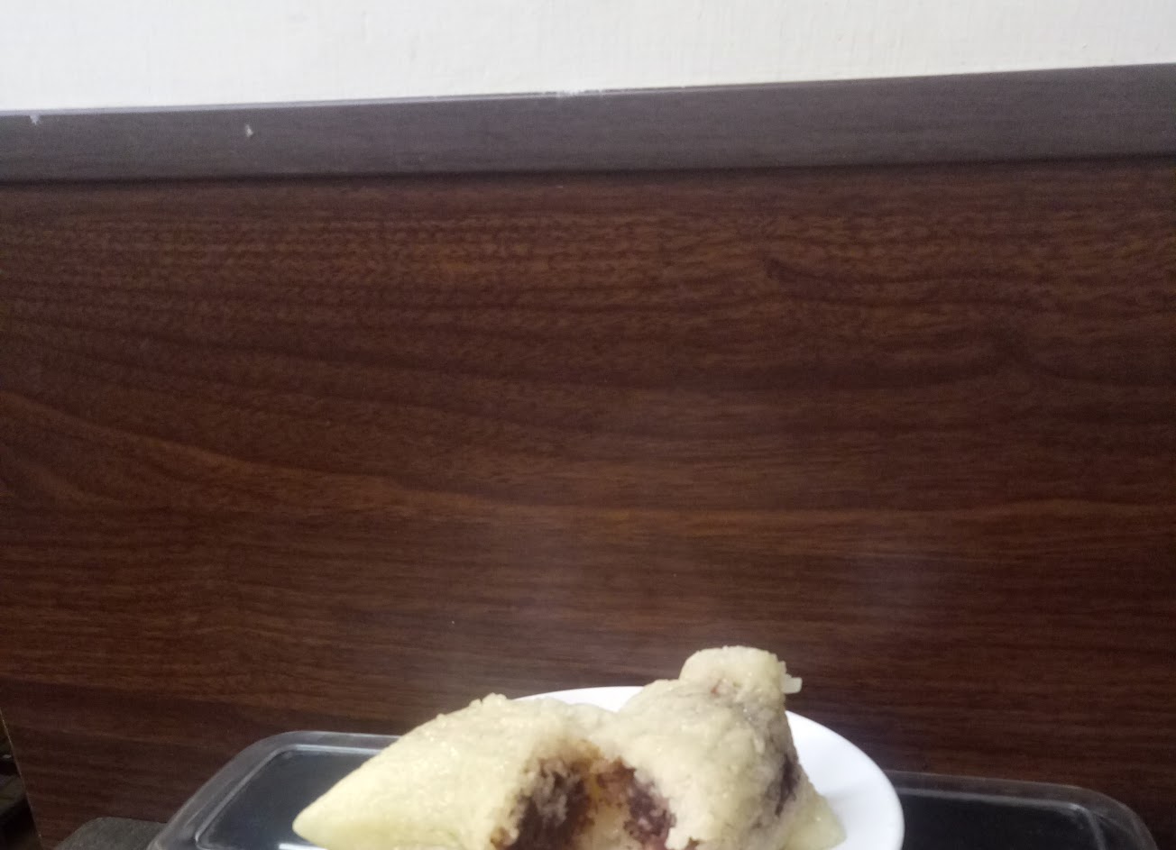 外型長條,看起來偏濕的肉粽,裡面也就只有豬肉和糯米而已,吃起來沒什麼調味,很普