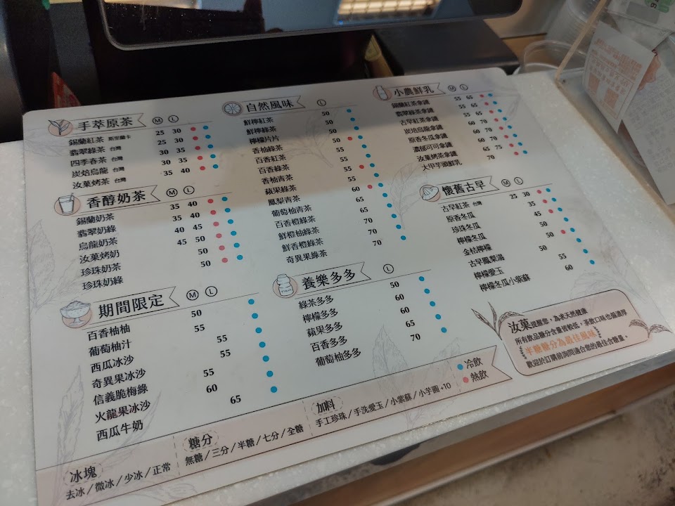 純茶品質很好,最常買四季春茶,水果類有試過檸檬綠與香橙綠,清爽好喝,值得試試。