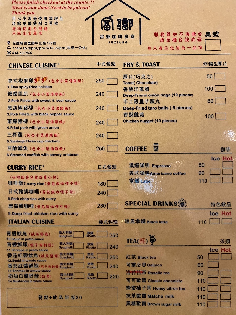 希望店家能做改進,讓富里有真的美食餐廳讓人回味再關顧