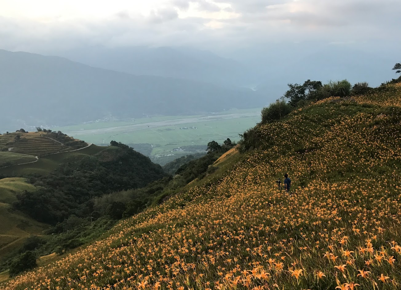我喜歡這裡的氣候,由置高點發現“雲山環繞”整個花東縱谷,8~9月是金針花季,你不能錯過的美景。
