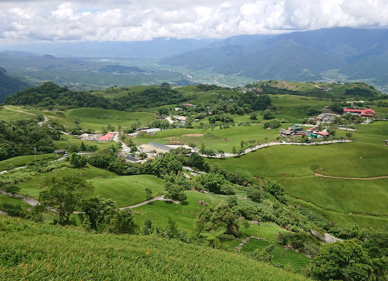 可惜我們來早了一些,還不到金針花海盛開的時節,而非金針花期的六十石山,也別有一番風情,綿延數十里的翠綠山坡,令人心胸開闊,站在觀賞亭上俯瞰花東縱谷,那番景色讓人難以忘懷⋯⋯