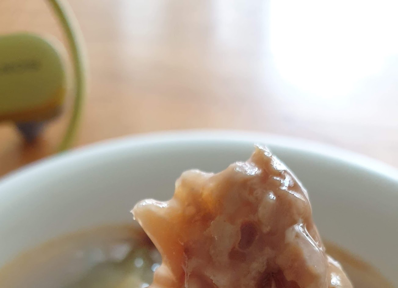 淡淡綠茶香,透過Q彈嚼勁的肉圓皮帶出來了香氣,內容餡料調味屬鹹甜口感又不會太膩,非常值得來吃!