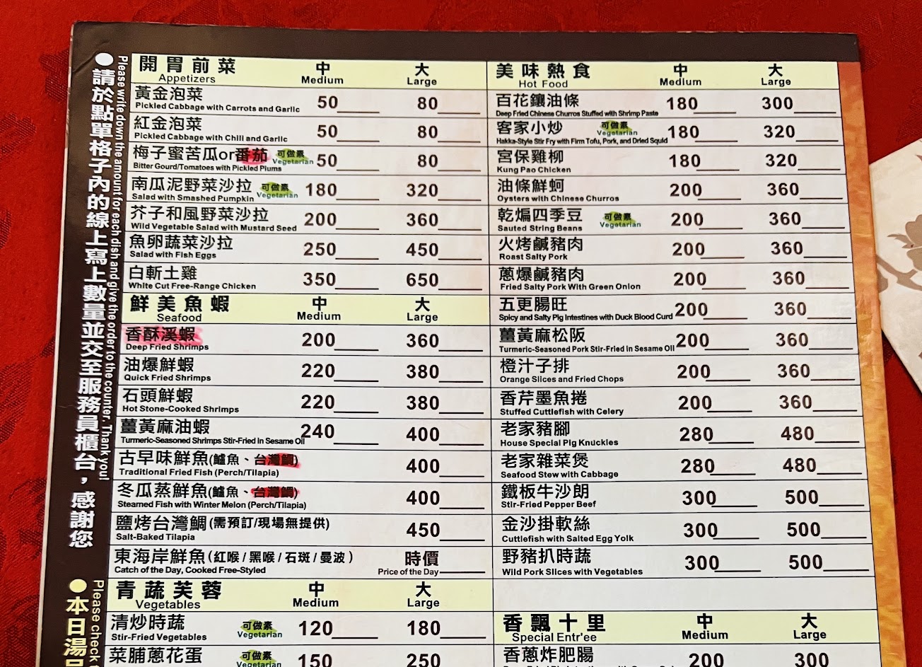 溪蝦280元只有10支左右,滿滿的配菜,問了服務員這個菜怎麼只有10支蝦? 服務員只回覆「再幫你問廚房」,就沒然後了,到底有沒有詢問又或是問完後的答案是什麼都不知道,感覺也不是第一次遇到客人問這個問題。其它菜色還可以,上菜速度也算快,但光這一道菜就讓大家吃得滿肚子氣。