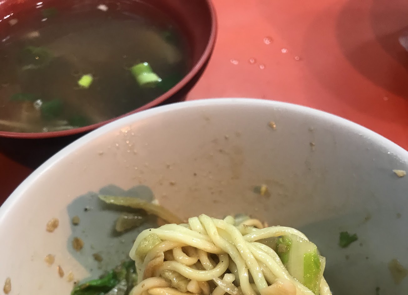 (點了乾麵,有榨菜、肉絲,醬汁味不錯,算是一個驚艷點)