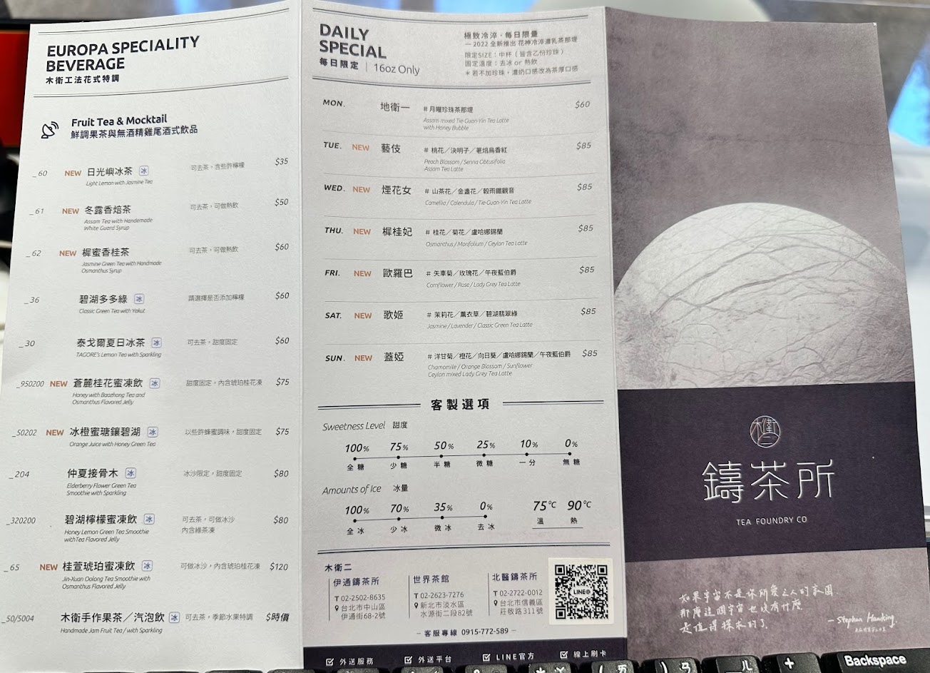 每天都有限定的奶茶品項固定去冰+固定甜度減10元並送一份珍珠。