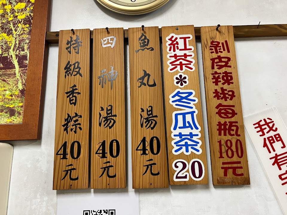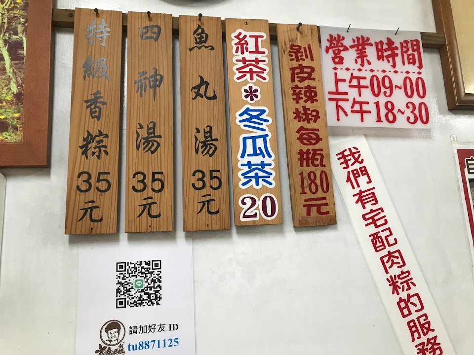 粽子只有包肉,但是豪好吃,不敢吃辣但加他的辣醬(像甜辣醬的),很讚,再加一碗四神湯,棒
