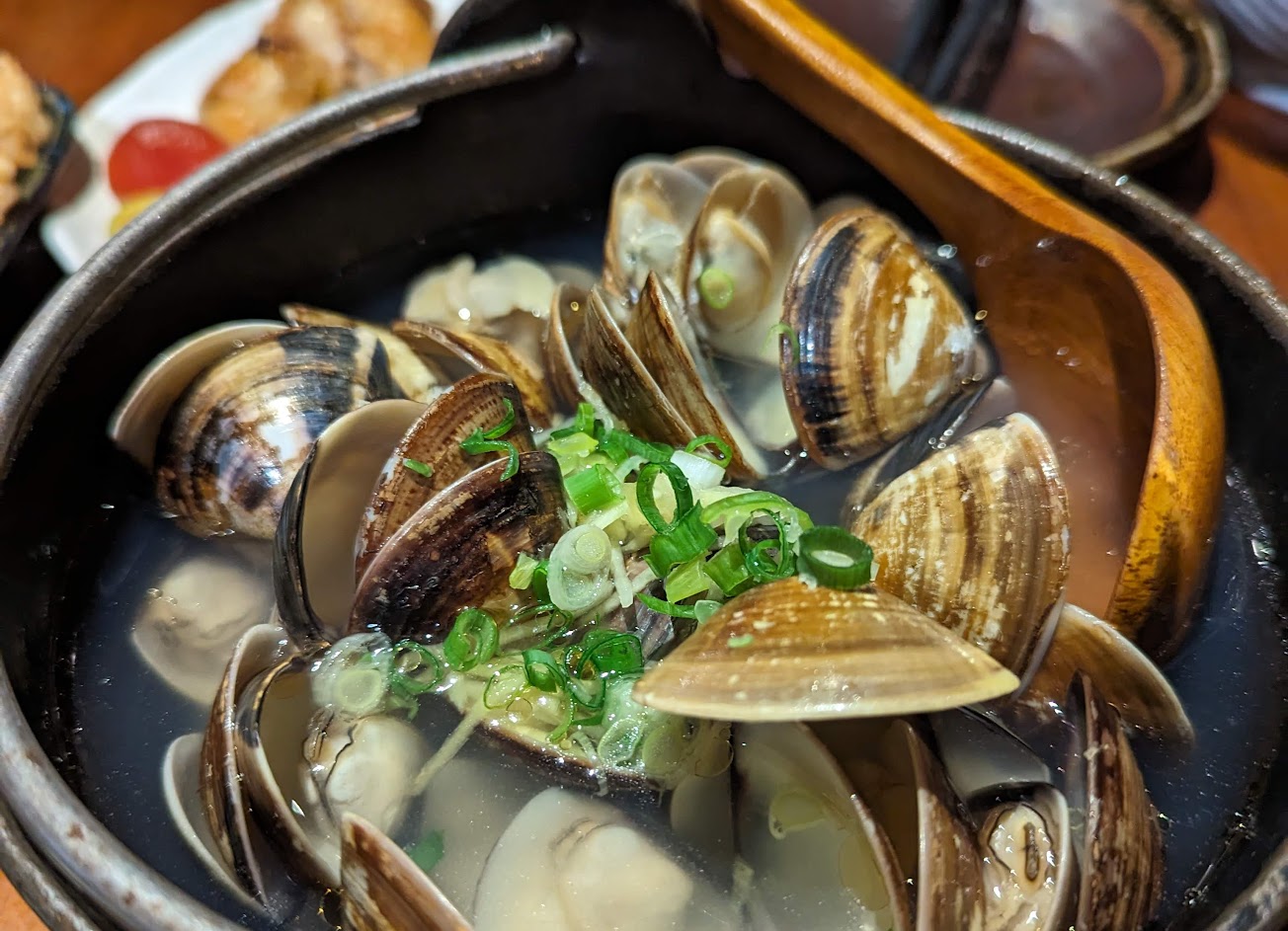 滿滿日酒蒸蛤蜊 明太子雞肉串 柳葉魚一夜干 日酒大蛤湯