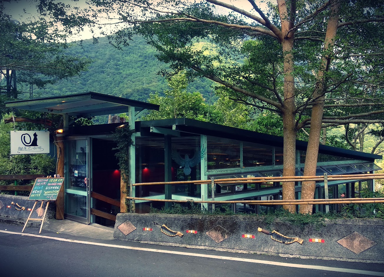 座落在環山雲繞的貓尾巴咖啡是旅人休憩的好地方,等餐時間可以到戶外感受叢山峻嶺帶來的震撼,店內的小狗小貓非常的友善有禮,都不會在用餐時間打擾,而是靜靜的陪著