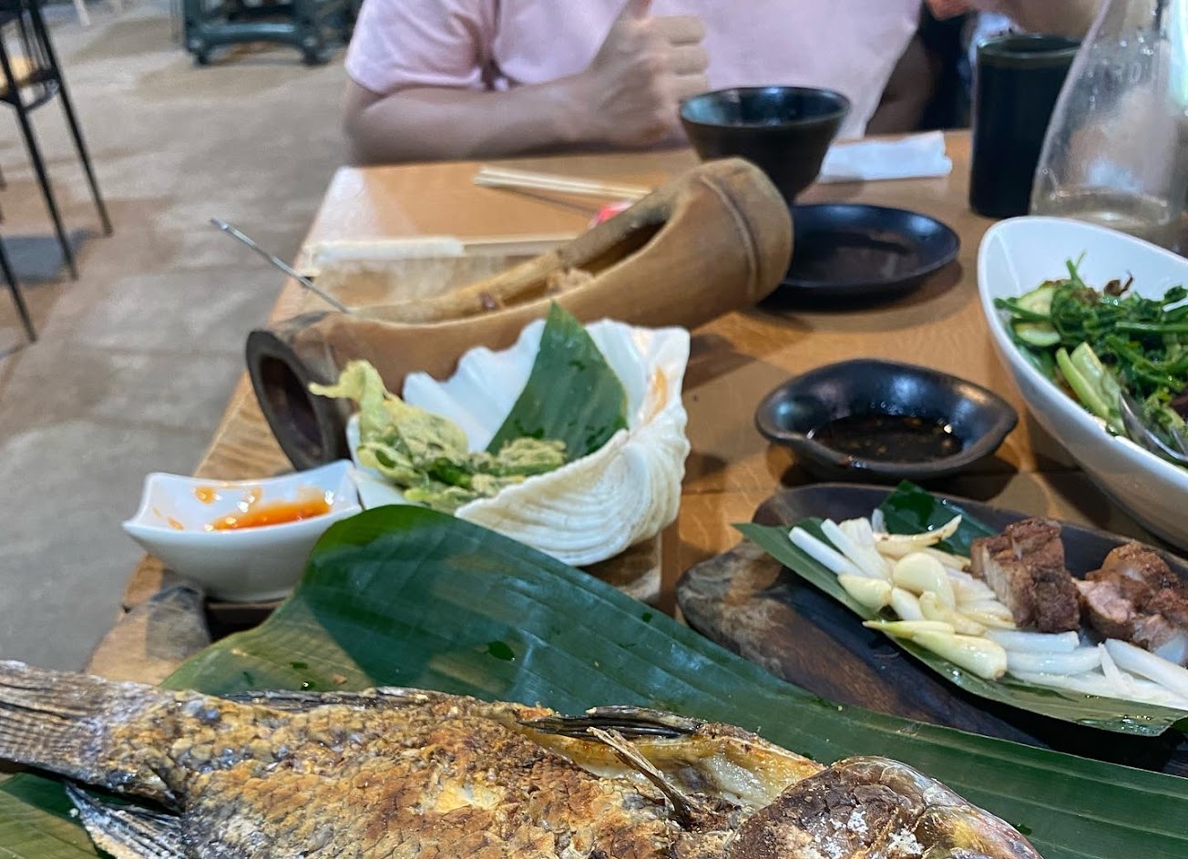 這家算人頭,500/人,也需要預訂,他才會幫你準備食材。 他的生菜蠻特別又好吃,我們跟老闆娘一樣一樣的確認每樣的名稱٩(˃̶͈̀௰˂̶͈́)و 他還有一個特點:竹筒飯自己敲開。 我覺得蠻有樂趣的。 來學習不同的文化、生活、食物