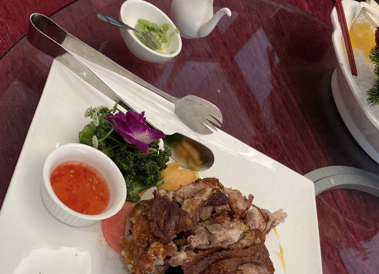 無菜單(桌菜)餐廳,800、1200、1500要加一成服務費/選一人1200的,廁所在室內但沒冷氣熱得要命,這家餐廳是不是搞錯無菜單的含義,看到照片上這兩個菜上來後真的食慾全無,後面的松阪豬就是工廠醃料味的口味,不能說它不好吃,但真的不用花1200來吃桌菜?