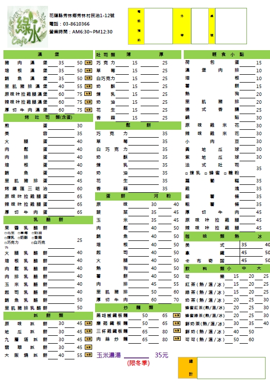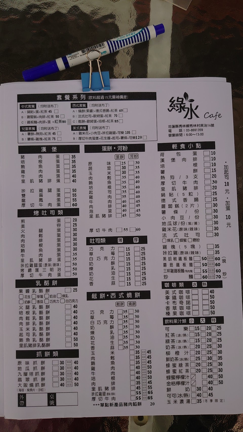 2024最新在地推薦餐廳的菜單_綠水Cafe的菜單、圖片