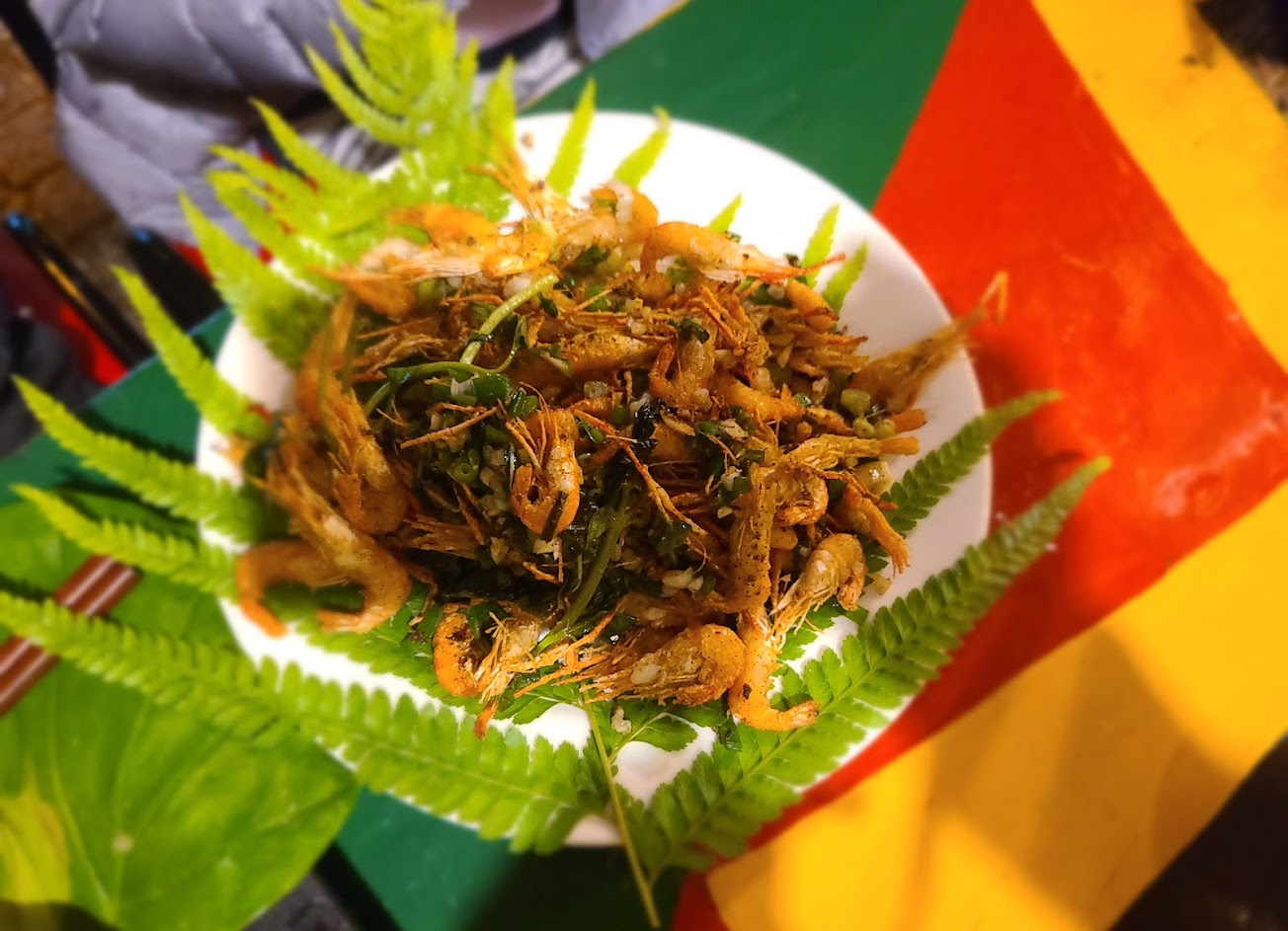 上太魯閣前先來吃頓好吃的原住民佳餚,炸溪蝦大份又香酥,野菜也是條理的非常好吃,山蘇爽脆而不韌,預約才有的魚更是饕客必點,香蕉飯比起主食,更像甜點。