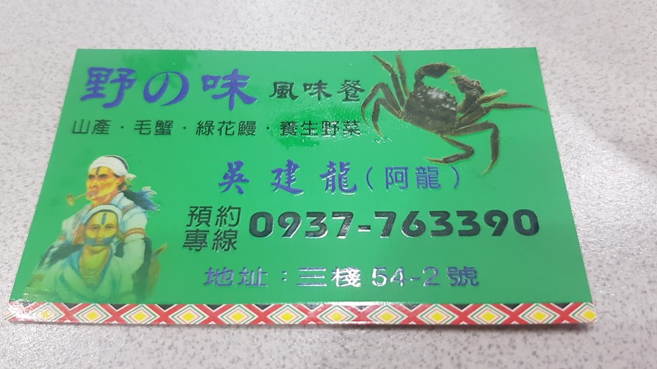 非常精緻的野之味料理,精緻度根本就是日本料理等級,色香味俱全,廚師和店員都非常熱心介紹菜色,值得專程到店裡品嚐美食。 前菜生魚片是用椰肉做的,說實話味道比軟絲還鮮甜,口感幾乎一樣。 炒蕨菜(過貓)纖維超細緻,不愧是山中野菜品質。 炒河蚌保持著鮮嫩口感,可以吃到河蚌鮮味。 炒山豬肉裡面還藏著好吃的桂竹筍。 野菜雞湯混著小魚干熬煮,湯頭很清甜。 以上是每人400元的無菜單料理,感謝大廚的精心調配。 覺得味道太好了,又單點了二道菜。 炸物拼盤:炸魚咬二下就化掉了,炸地瓜用的是台農66品種,鬆綿香甜,炸起士更是絕品,裡面的蝦子蘆筍起司完美結合,牽絲的好好吃。 另外蒜炒蔗燻山羊肉,濃郁的煙燻香味讓人白飯一碗接一碗,山羊皮更是軟Q順口,堪稱極品。 以後花蓮玩有機會都要特別安排來此好好享受一頓美食。