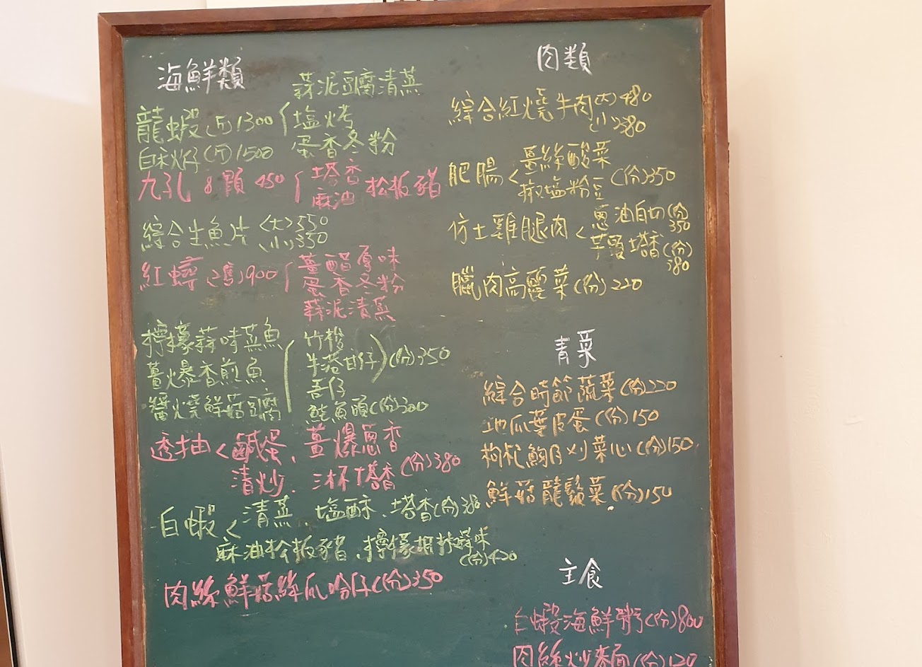 食材新鮮(活龍蝦、活鮑魚、當日食材納入黑板菜單)、價格公道(龍蝦秤重計價)、烹煮簡單好吃,CP值相當高。唯食客不少,晚到要排一、二個小時,甚至排不到。